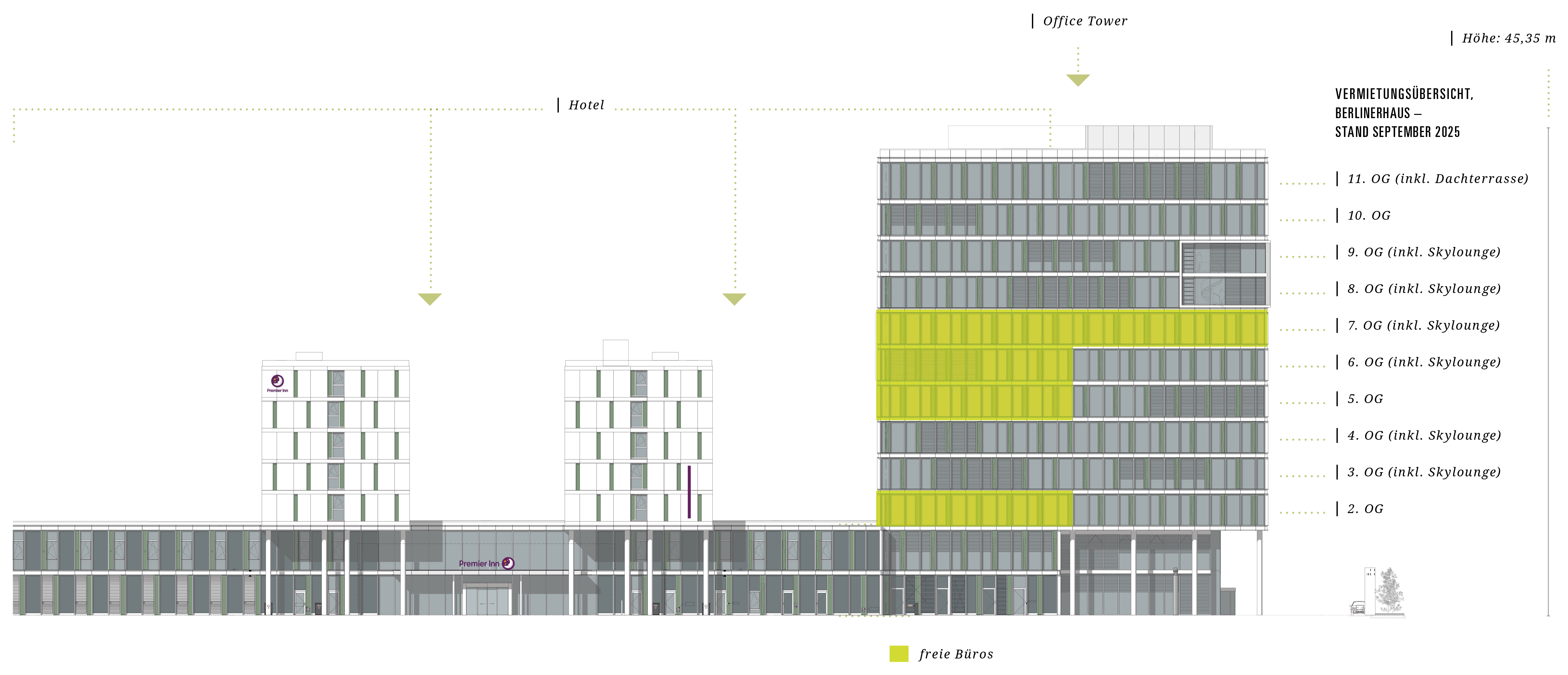 Das BERLINERHAUS ist ein wegweisender Hybrid, bestehend aus einem modernen Büroturm mit neuester technischer Ausstattung und einem stylishen Design-Budget-Hotel.